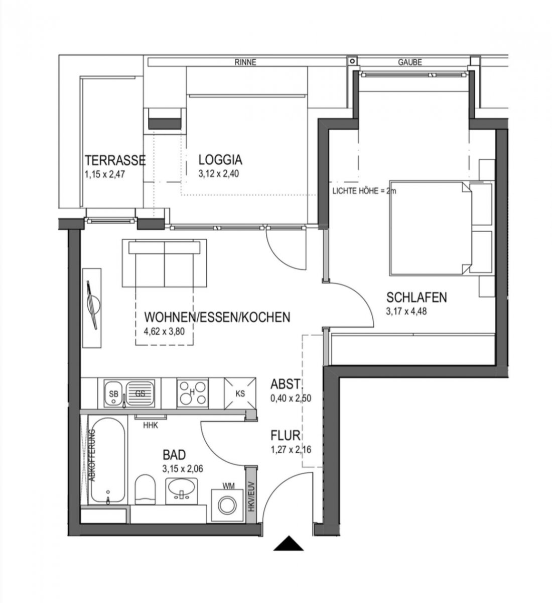 Balkon oder Terrasse erhalten keine Mittags- oder Abendsonne.